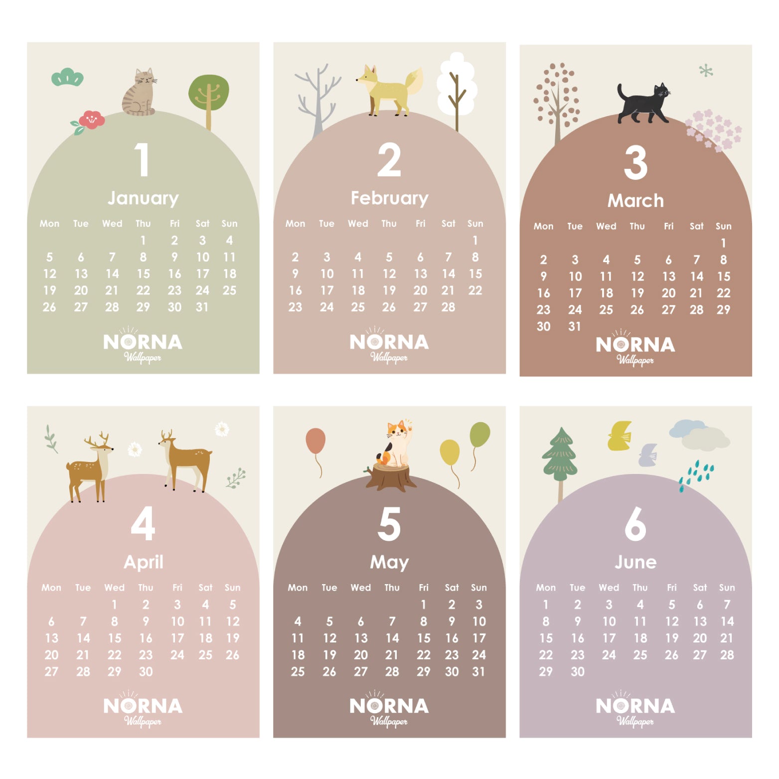 2026年カレンダー 貼ってはがせるシール NORNA