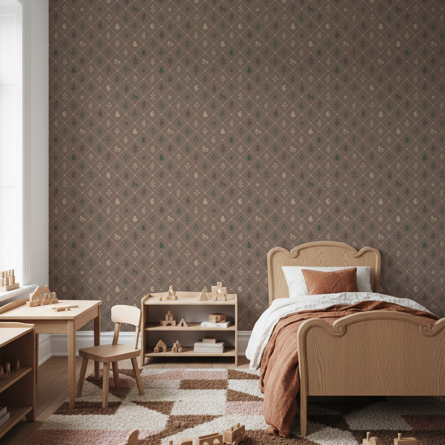 【Norna-027/まろん】 貼ってはがせるシール壁紙 チェック柄 puu.tuuliコラボ
