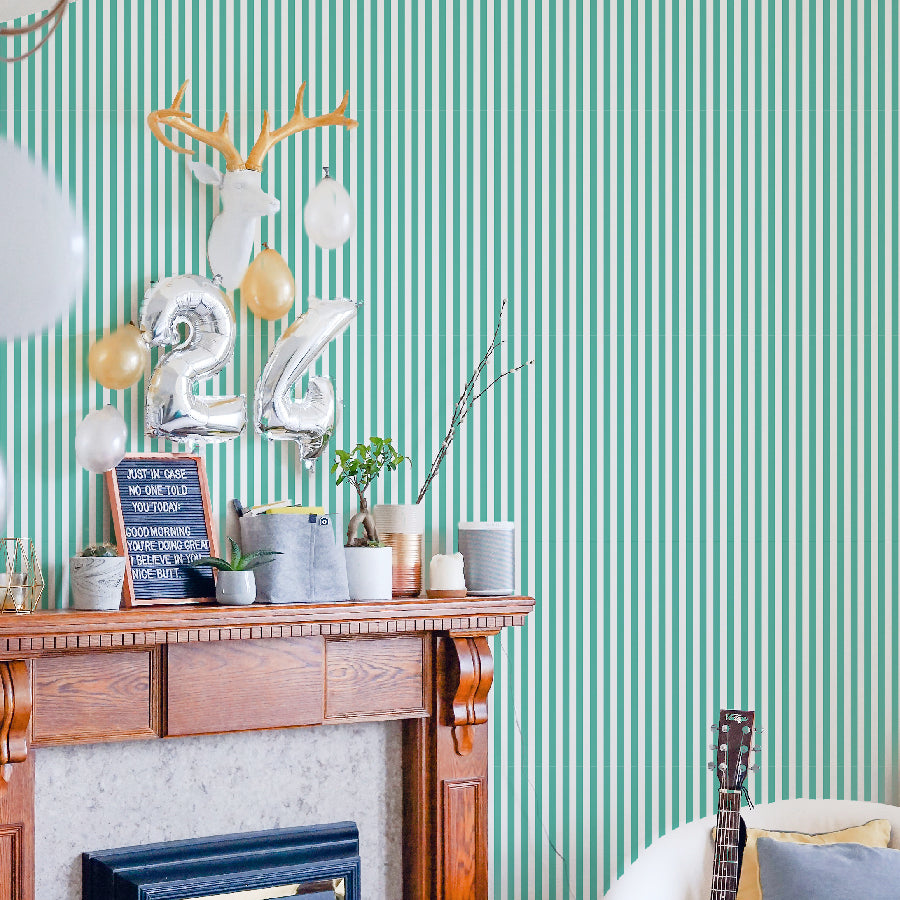 【Stripe-S-07 / ストライプ柄ブルーグリーン】 貼ってはがせるシール壁紙